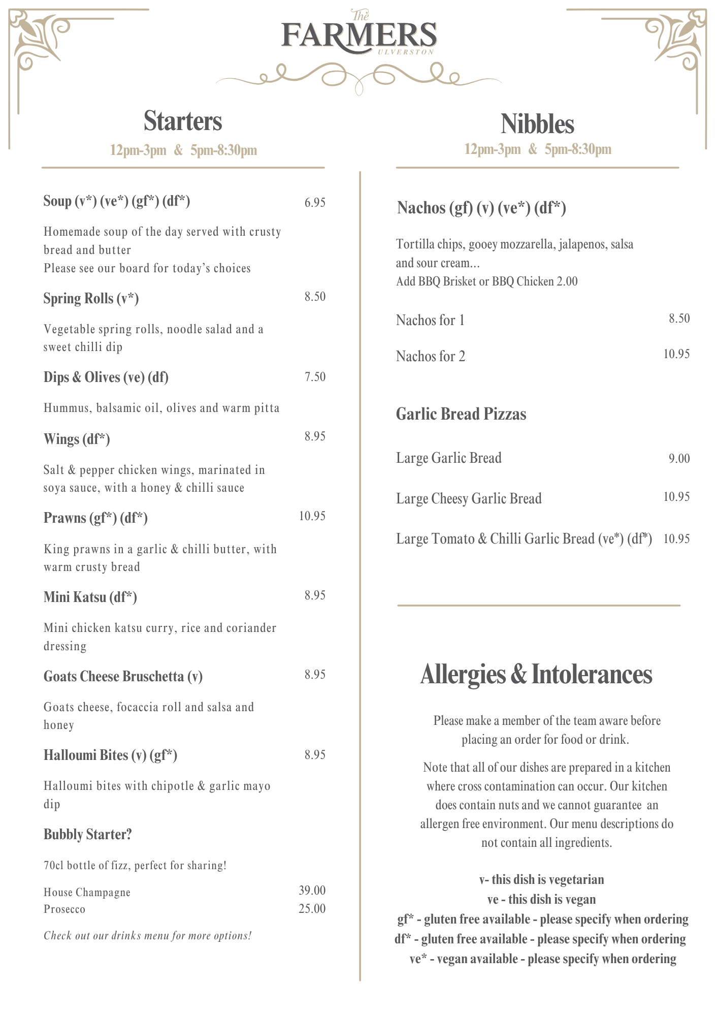 Note that all of our dishes are prepared in a kitchen where cross contamination can occur. Our kitchen does contain nuts and we cannot guarantee an allergen free environment. Our menu descriptions do not contain all ingredients.